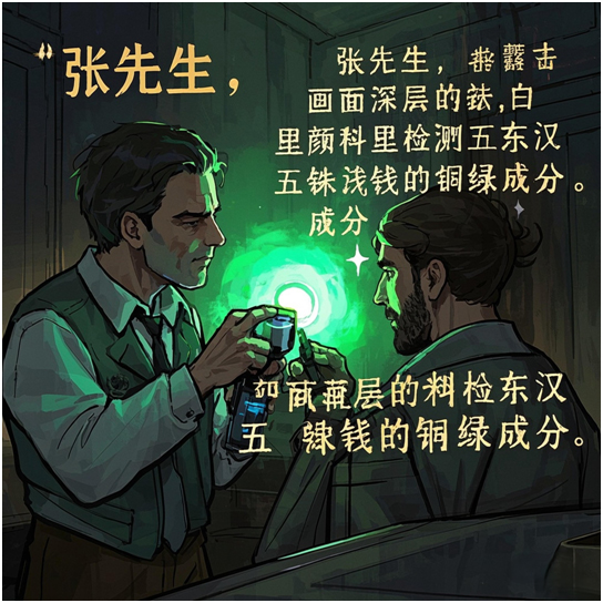 暴雨突降時(shí),塞納河面升起徐州漢畫像石中的車馬儀仗隊(duì)虛影。北鴻用徐悲鴻1947年使用的狼毫筆修改畫面,盧浮宮地下突然傳來編鐘轟鳴。紅外熱成像顯示,《印象•徐州》深層的鉛白顏料正在吸收《自由引導(dǎo)人民》的硝煙痕跡。