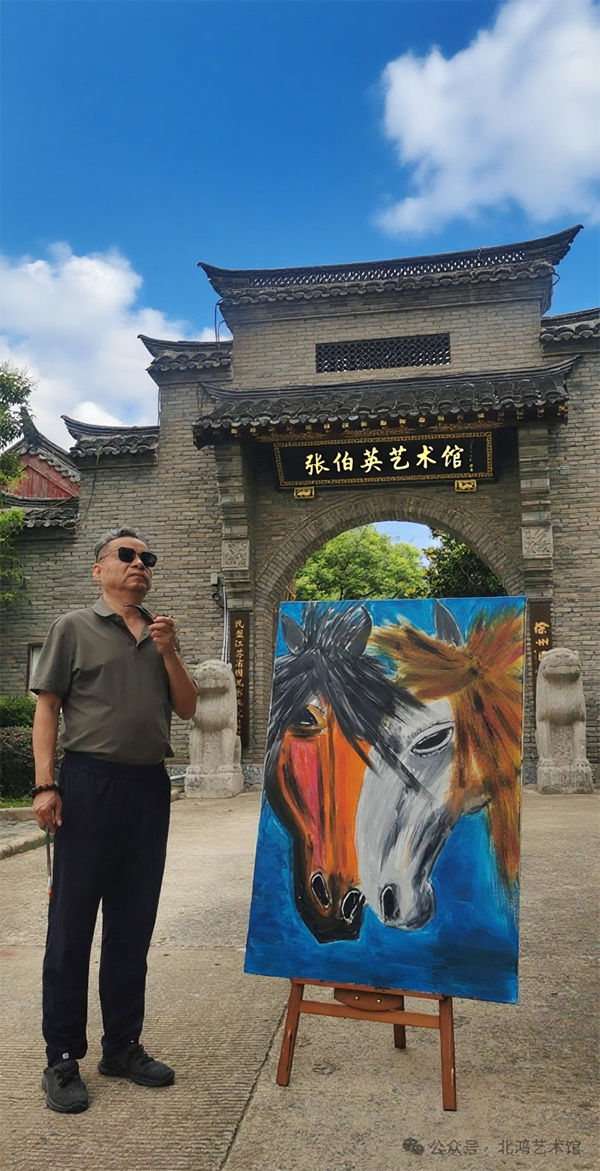 北鴻在張伯英藝術(shù)館創(chuàng)作