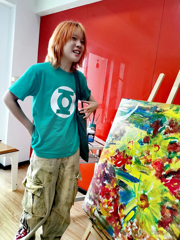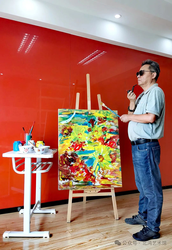 主題盛放的生命禮贊: 作品以花卉為主題,是對(duì)生命燦爛時(shí)刻的深情禮贊。黃色的希望與朝氣、紅色的熱情與活力,交織成繁花盛放的圖景,恰似人生最美好的“花樣年華”——無(wú)畏、熱情、飽含生機(jī)。北鴻借超印象風(fēng)格突破寫實(shí)樊籠,將花之形態(tài)升華為生命狀態(tài)的象征,歌頌著勇敢綻放與熱烈生活。