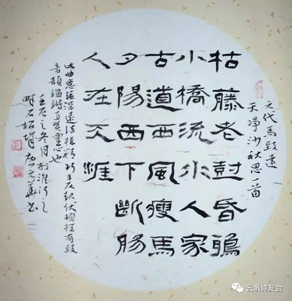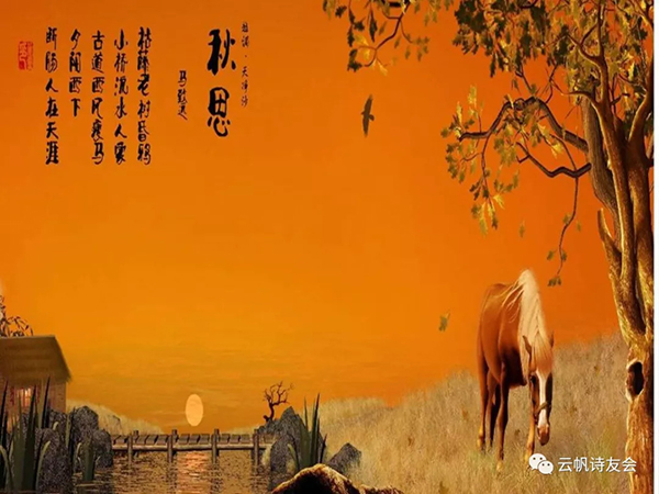 這首小令很短,一共只有五句二十八個(gè)字,全曲無(wú)一秋字,但卻描繪出一幅凄涼動(dòng)人的秋郊夕照?qǐng)D,并且準(zhǔn)確地傳達(dá)出旅人凄苦的心境。被贊為秋思之祖這首成功的曲作,從多方面體現(xiàn)了中國(guó)古典詩(shī)歌的藝術(shù)特征。