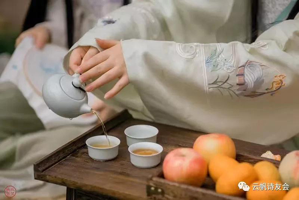 金甌騰起碧芽,舉樽卻話桑麻。醉里嬌鶯牽我,回眸一抹明霞。