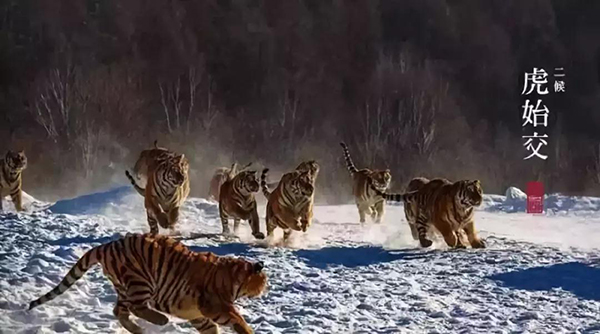 一候鹖鴠不鳴;二候虎始交;三候荔挺出。