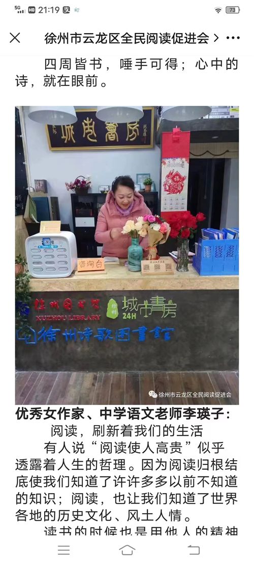 作者簡介:李瑛子,女,出身軍人家庭,江蘇徐州中學語文老師,優(yōu)秀女作家。1986年至今在《人民文學》《解放軍文藝》《解放軍日報》《中國青年報》《詩刊》《女友》《知音》《小說月報》《上海文學》《鄉(xiāng)土》《徐州日報》《彭城晚報》《連云港文學》《藏在心底的記憶》等報刊雜志上發(fā)表600余篇文學作品,并多次獲獎。