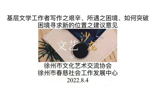 徐州市文化藝術(shù)交流協(xié)會(huì)、徐州市春慈社會(huì)工作發(fā)展中心舉辦首期“文藝沙龍”活動(dòng),探求基層作家創(chuàng)作突圍之路