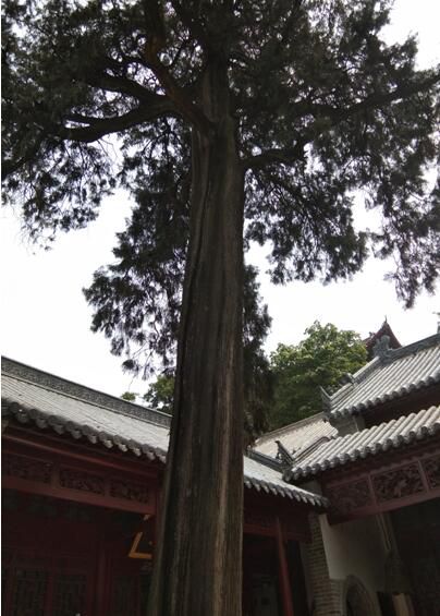 從小就記得,在大士巖觀音殿前的院內(nèi)有兩棵蒼勁的古柏非常搶眼,這兩棵古樹每棵樹的樹干直徑近一米左右,至少需兩人合抱。樹高足有十幾米,樹冠也有近十米,在略顯局促的院內(nèi)上空遮天蔽日。這兩棵體量近似、樹齡相仿古老遒勁的柏樹如同孿生姐妹,非常知趣的在院內(nèi)東西列位相向而立。今日再次見到兩顆大樹倍感親切,大樹還是舊日的模樣,和半個(gè)世紀(jì)前幾無二致。