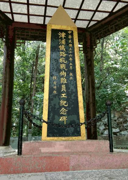 記得,進(jìn)山門不遠(yuǎn)處左側(cè)有一處津浦鐵路殉難員工紀(jì)念碑亭。可環(huán)顧左右并沒有發(fā)現(xiàn)什么碑亭?經(jīng)向路過身邊的一位工作人員打問,方知碑亭還在,只是在左前方百米處。哦,原來是我的記憶出現(xiàn)了偏差。