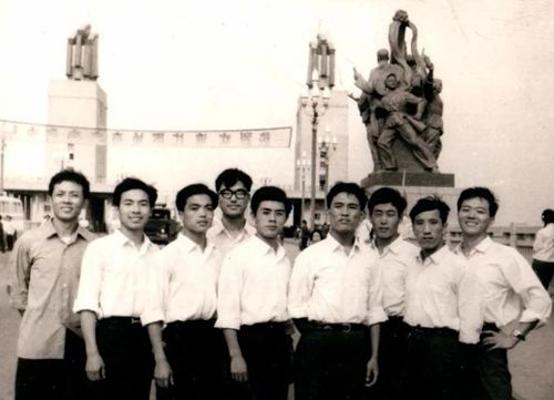 徐州礦務(wù)局宣傳隊(duì)1975年第一次參加省會演,李治良(左3)與,部分隊(duì)員在南京長江大橋合影