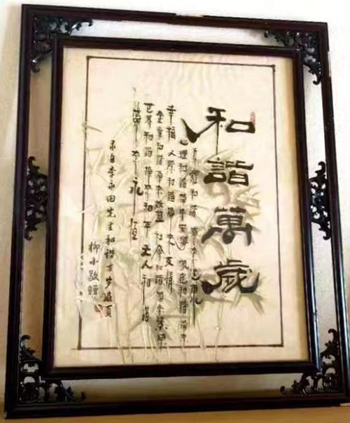 柳新小學(xué)贈送李永田教授的剪紙作品《和諧萬歲》