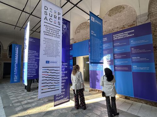 威尼斯建筑雙年展是全球歷史最悠久、影響力最大的建筑藝術(shù)展覽。本次展覽由聯(lián)合國(guó)教科文組織歐洲科學(xué)與文化區(qū)域局、威尼斯市政府、沙特阿拉伯埃爾奧拉皇家委員會(huì)聯(lián)合主辦,展覽聚焦全球50多個(gè)教科文冠名地的訪客中心優(yōu)秀案例,旨在展現(xiàn)這些建筑如何促進(jìn)教科文冠名地的保護(hù)、管理與社會(huì)服務(wù)等方面的作用。