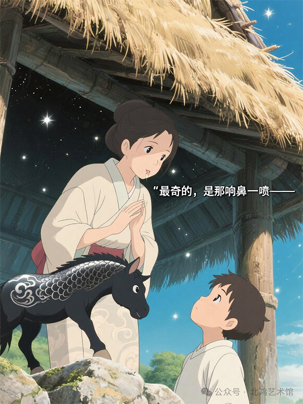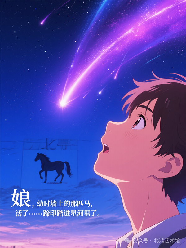 “娘,”北鴻對(duì)著蒼茫夜色低語,聲音沉得如同夯入墻基的石錘,“幼時(shí)墻上的那匹馬,活了……蹄印踏進(jìn)星河里了。”