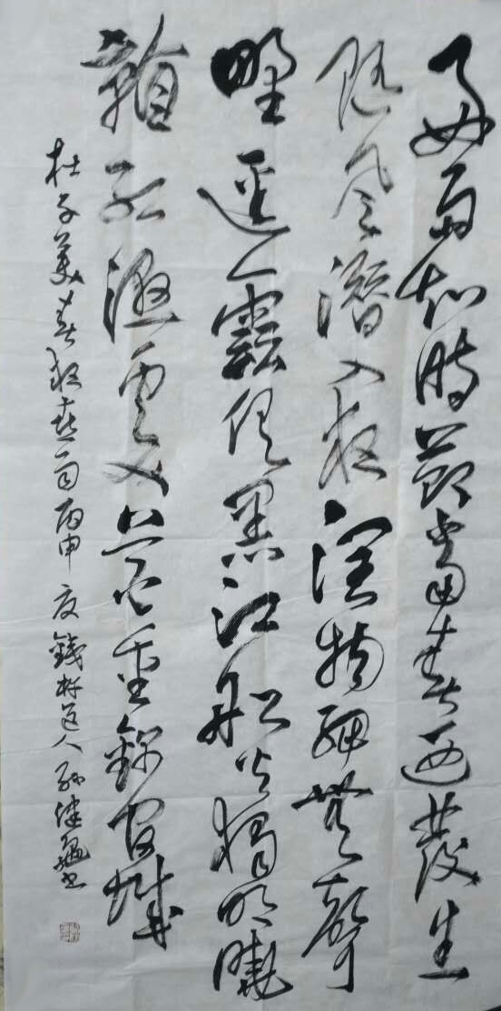 | 孫健龜,原名孫守兵,字半解,別號鐵杵道人。1959年出生,1987年無錫書法藝專畢業(yè),少小習書,雖在軍旅未嘗稍輟。得聆林散之、沈鵬、祝嘉、王冰石、金德欣、劉文華等名家教誨,其楷書臨習顏、歐旁及魏碑,其行草書宗法二王又深得懷素、王鐸之風韻。多次參加國際、全國展賽,獲全國總工會書賽一等獎、桂陵杯國際書賽一等獎、中國國際文學藝術(shù)[書法類]特別等級獎、中華炎黃書畫藝術(shù)大展最佳作品獎、世界華人展銀獎同時被授予“優(yōu)秀藝術(shù)家”稱號。1997年8月在徐州古彭藝術(shù)家畫廊成功的舉辦個人書展,作品曾多次在北京榮寶齋、軍事博物館、人民大會堂舉辦展覽。書法報、書畫報、人民日報、美術(shù)報、等報刊作了報道。作品入編入典《書畫選集》、《書畫精品集》、《書法家大辭典》、《世界華人書畫家大辭典》等60多部。作品散見于80余種報刊雜志中,作品流傳海內(nèi)外并被一些博物館收藏。系中國書法家協(xié)會會員、江蘇書法家協(xié)會會員、中國硬筆書法家協(xié)會會員、中國書畫家聯(lián)誼會理事、中國藝術(shù)研究院文研中心書畫師、中外書畫藝術(shù)協(xié)會客座教授、現(xiàn)代民族書畫家協(xié)會副主席、新世紀書畫研究院副院長、世界書畫篆刻家協(xié)會會員等。藝無止境,勇攀高峰。孫健龜自2014年從工作崗位上退休后就去了北京訪問學者、拜訪名師,還在中國人民大學就讀孫其峰、鄭曉華、張大林教授書畫高研班。