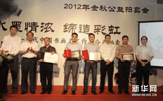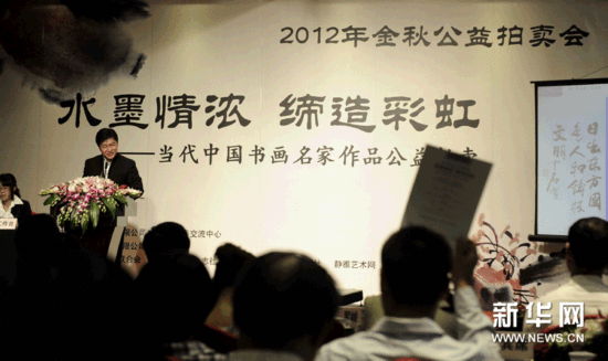 2012年9月16日 “水墨情濃 締造彩虹——當(dāng)代中國書畫名家作品公益拍賣會(huì)”在京舉行。當(dāng)日,由新華時(shí)代(北京)傳媒文化有限公司和中慈國際交流中心共同主辦的“水墨情濃締造彩虹——當(dāng)代中國書畫名家作品公益拍賣會(huì)”在北京舉行,200余幅書畫拍品中包括史國良、范曾、歐陽中石等名家的作品。 新華社記者季春鵬 攝