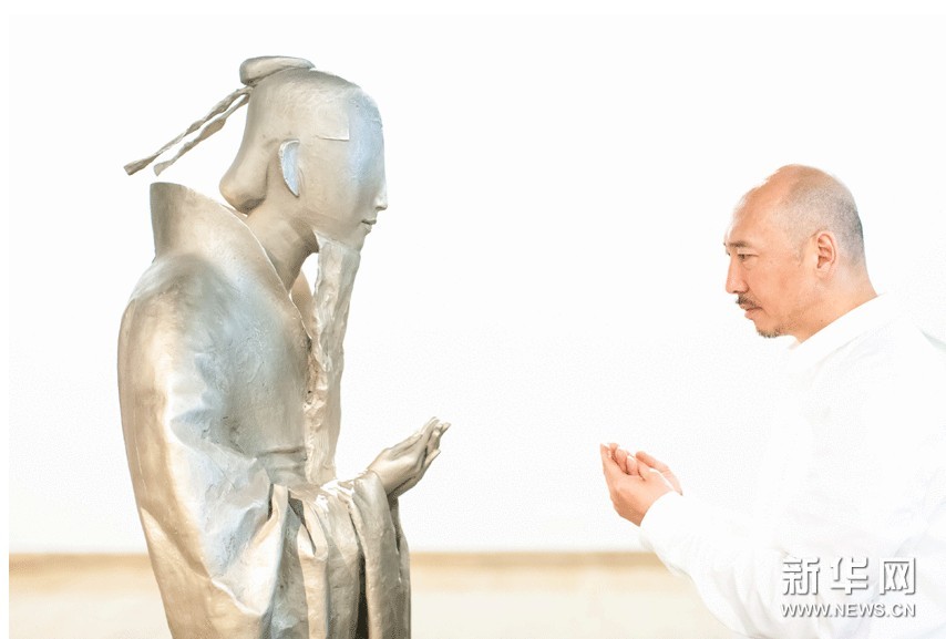 由中國(guó)美術(shù)家協(xié)會(huì)、中國(guó)美術(shù)館、清華大學(xué)共同主辦的著名雕塑家李象群首次大型個(gè)展“行人”于9月22日至9月25日在中國(guó)美術(shù)館展出。李象群是我國(guó)著名雕塑家、清華大學(xué)教授,其雕塑代表作《紅星照耀中國(guó)》《我們走在大路上》《堆云·堆雪》等眾多作品被中國(guó)美術(shù)館、國(guó)家博物館、中國(guó)現(xiàn)代文學(xué)館、國(guó)際奧委會(huì)等收藏。新華網(wǎng)圖片 劉彬 攝
