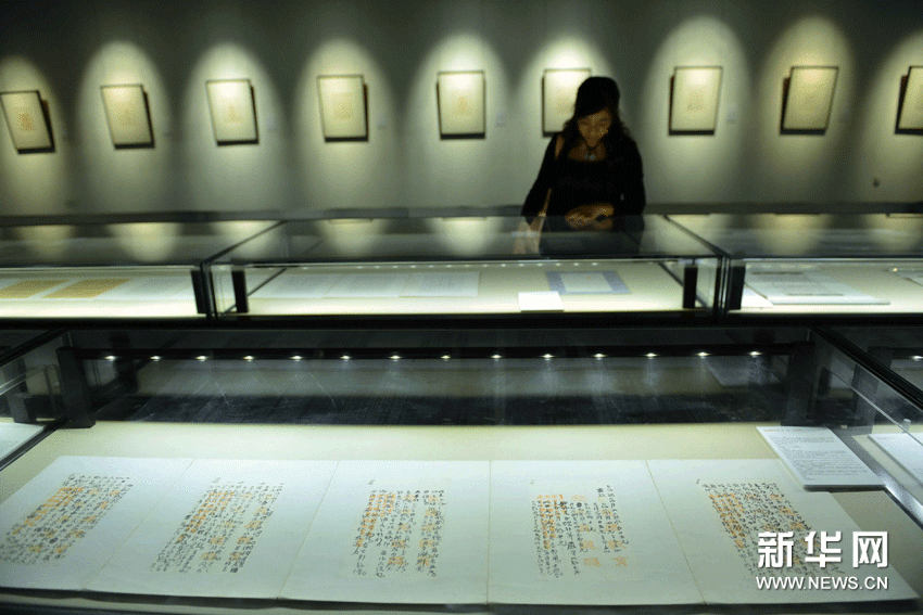 10月10日,“天心月圓——弘一法師手跡展”在杭州的浙江美術(shù)館開幕。共展出弘一法師的手札、書法作品150余件,全面反映了弘一法師在書法上的藝術(shù)成就。弘一法師,原名李叔同,中國話劇的開拓者之一,在音樂、書法、繪畫和戲劇方面都頗有造詣。從日本留學(xué)歸國后,擔(dān)任過教師、編輯之職,后剃度為僧,法名演音,號弘一。2012年是弘一法師逝世70周年。新華網(wǎng)圖片 龍巍 攝