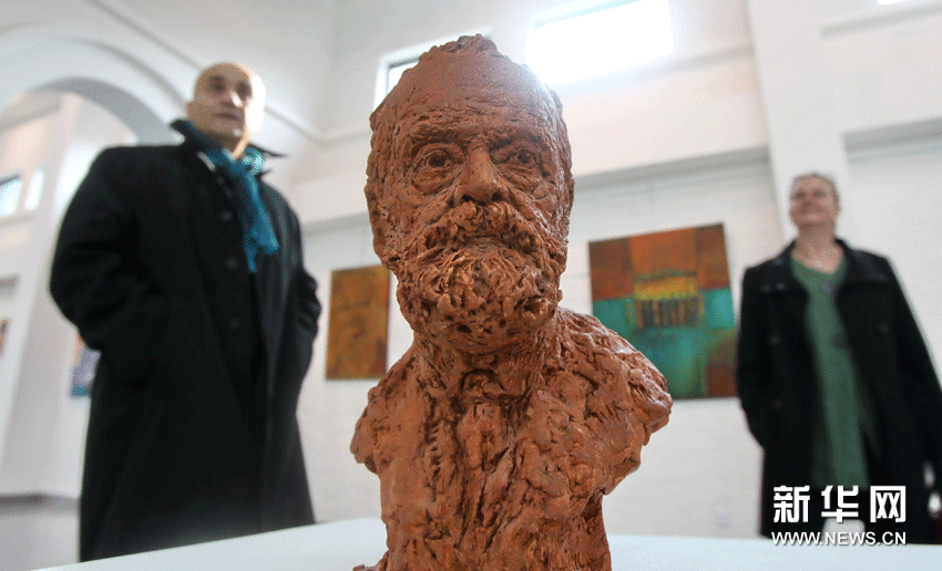 (1)11月8日,參觀者在法國當代藝術展上觀看陶土雕塑作品《雨果胸像》。