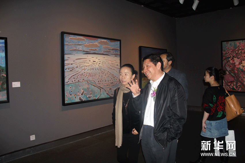 (10)11月15日,著名畫家閆平陪同中國人民大學(xué)副校長、教授楊慧林先生參觀展覽。新華網(wǎng)圖片。