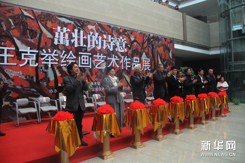 新華網(wǎng)江蘇11月15日電 由浙江美術(shù)館、中國(guó)人民大學(xué)主辦,中國(guó)文化藝術(shù)發(fā)展促進(jìn)會(huì)、中國(guó)油畫(huà)雜志社協(xié)辦,中國(guó)美術(shù)館館長(zhǎng)、著名美術(shù)批評(píng)家范迪安先生學(xué)術(shù)主持的“茁壯的詩(shī)意——王克舉繪畫(huà)藝術(shù)作品展”于2012年11月15日下午3點(diǎn)在浙江美術(shù)館第隆重開(kāi)幕, 出席開(kāi)幕式的有浙江省副省長(zhǎng)朱從玖、中國(guó)美術(shù)館館長(zhǎng)、全國(guó)美術(shù)館專業(yè)委員會(huì)主任范迪安 、中國(guó)美術(shù)家協(xié)會(huì)副主席、浙江文聯(lián)主席、中國(guó)美術(shù)學(xué)院院長(zhǎng)許江、中國(guó)人民大學(xué)副校長(zhǎng)楊慧林、中國(guó)油畫(huà)學(xué)會(huì)副主席、中國(guó)美術(shù)學(xué)院 教授 全山石、中國(guó)美術(shù)學(xué)院油畫(huà)系主任楊參軍、浙江美術(shù)館館長(zhǎng)馬鋒輝 、中國(guó)文化藝術(shù)發(fā)展促進(jìn)會(huì)會(huì)長(zhǎng)何秀范等領(lǐng)導(dǎo)。展期將持續(xù)至11月23日。