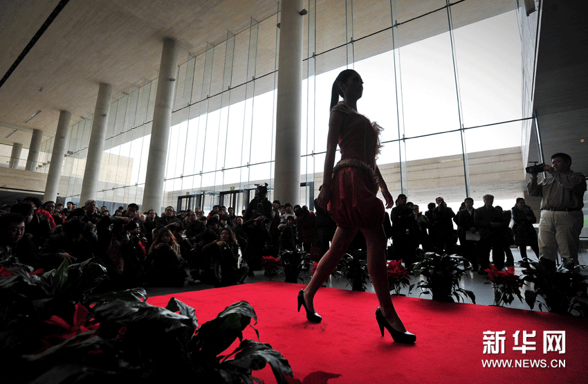 (4)12月1日,來自天津師范大學的學生在展示他們的服裝設(shè)計作品。