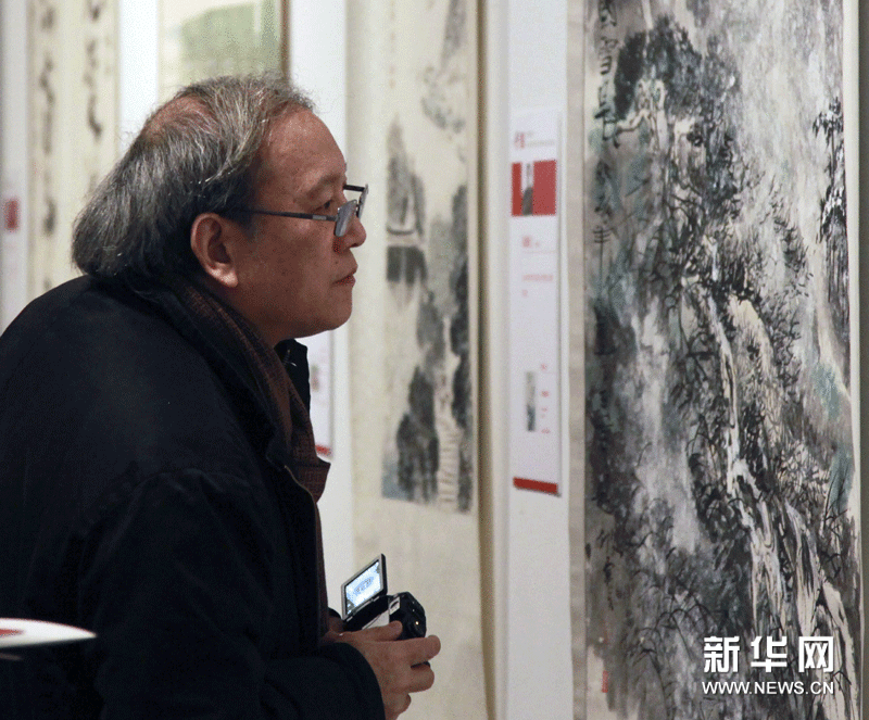 (1)12月8日,參觀者在南京藝術(shù)學(xué)院百年校慶師生美術(shù)作品展上欣賞展品。