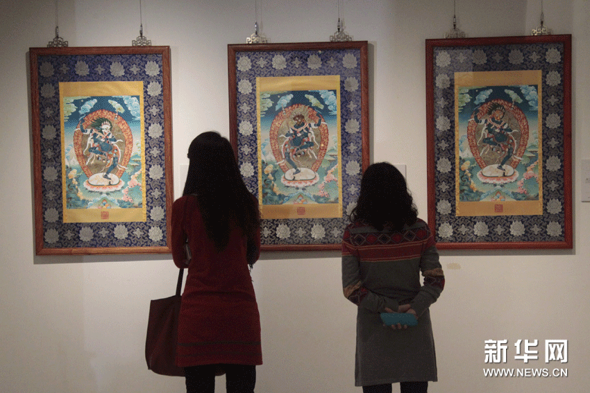當(dāng)日,“唐卡瑰寶”鑒賞介紹會(huì)在北京視覺經(jīng)典美術(shù)館舉行,宗教界、社科院和美術(shù)界多位專家對展出的60余幅唐卡精品進(jìn)行講解介紹。 新華網(wǎng)圖片 汪永基 攝