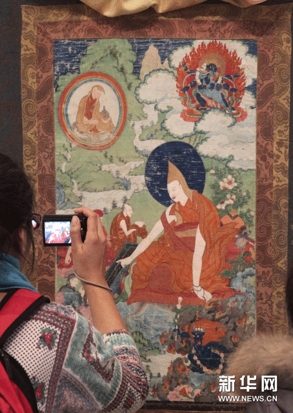 當(dāng)日,“唐卡瑰寶”鑒賞介紹會在北京視覺經(jīng)典美術(shù)館舉行,宗教界、社科院和美術(shù)界多位專家對展出的60余幅唐卡精品進(jìn)行講解介紹。 新華網(wǎng)圖片 汪永基 攝