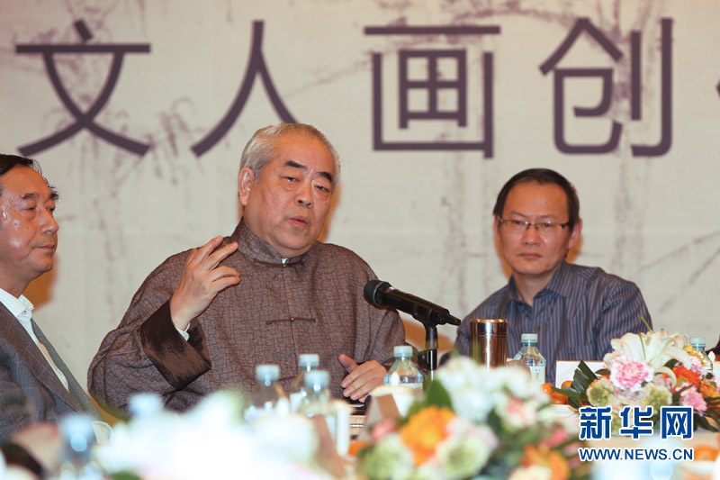 2012年12月22日,由中國藝術(shù)研究院、人民美術(shù)出版社等單位主辦的2012年“文人畫創(chuàng)作座談會”在北京舉行,20多位藝術(shù)家、收藏家、學(xué)者對文人畫的創(chuàng)作和復(fù)興以及文人畫的精神等問題進(jìn)行了深入討論。新華社記者 吳凱翔 攝