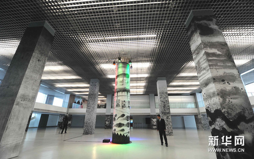 12月26日,《天柱》2013——陳嘉仁水墨藝術(shù)裝置展在北京中華世紀(jì)壇開幕。新華網(wǎng)圖片 李曉果 攝