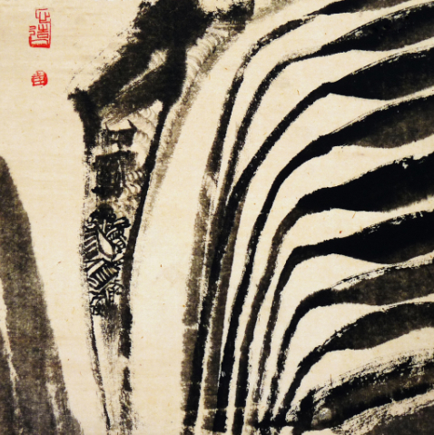 可追溯到1300多年唐代的元陽哈尼梯田,綿延幾百里,可貴的是,至今仍然保持著旺盛的生命力。它為人類提供了一處幾乎是極限生存條件下順應(yīng)自然,以非凡的創(chuàng)造力、毅力和樂觀精神成就美好生活的典范。向世界展現(xiàn)了古老東方稻作文明和傳統(tǒng)文化的無窮魅力。“在朝霞和落日中,逆光下的元陽梯田,形式感極強,既抽象又含蓄這令畫家興奮不已。面對如此天下奇觀,畫家如果僅局限某一具體實景去“描摹”,那就一定談不上是藝術(shù)。藝術(shù)只有從人本出發(fā),把激蕩心靈深層的,幽深莫測的事物轉(zhuǎn)化成神秘的精神上的情景,才能激起永恒的魅力,達到精神性的深邃與物態(tài)自然的深邃渾然一體。元陽是寧靜的。把寧靜的遐想溶入到深遠的哲理中去,把深沉的悲嘆轉(zhuǎn)化為豐富多彩的世界,力求作品呈現(xiàn)強烈的現(xiàn)代感和哲學(xué)意味,這就是之壺先生當代水墨語境所追求的,并在他的《之壺——元陽系列》中達到了。他從莊子智慧中得到領(lǐng)悟與反省,他受航天視覺體驗及道家的啟發(fā)找到了表達這種境界的密碼,由此探索出了一種全新的水墨樣式。這種樣式有東方的抽象,傳統(tǒng)哲學(xué)的陰陽關(guān)系,又有西方的構(gòu)成因素、色彩,點、線、面形成有節(jié)律的交響。一句話,既是從中國畫的固有程式中生發(fā)而來,又完全解構(gòu)了它。這種獨特的表現(xiàn)手法完全和傳統(tǒng)山水畫拉開了距離,是建立在當代人文視覺經(jīng)驗上的。是具有原創(chuàng)性和探索性的。