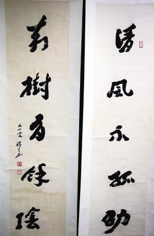 田耘收藏的老書法家祝嘉書法對(duì)聯(lián)。