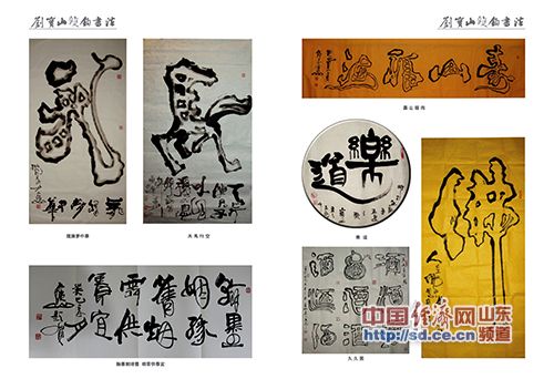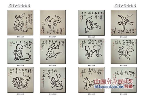 他創(chuàng)作的《56條龍》,是劉寶山龍年56歲之際創(chuàng)作的,長達(dá)40米,氣勢磅礴,可謂巨作。56個“龍”字,展示了如夢如幻、飄逸靈動的龍紋雙鉤空心書法風(fēng)格,形態(tài)各異。56個龍字富含“金”“石”(土)之氣,又有似根雕藝術(shù)的感覺,加之“火”炬與“水”紋線條的穿插,整體集靈動、原生態(tài)元素于一體,展現(xiàn)出龍紋雙鉤書法的靈魂和內(nèi)涵。其中主題龍字的創(chuàng)作,劉寶山賦詞題曰:“東方巨龍,炎黃之宗,潛游四海,頓作長虹。適逢壬辰,更露彩榮。五十六個民族齊心協(xié)力,各顯神通。挾風(fēng)雷以起步,攜十億登大同,和諧共弘”。劉寶山說,這56個龍字是他用自創(chuàng)的龍紋雙鉤書法寫就的,寓意中華56個民族團(tuán)結(jié)向上,象征巨龍騰飛。
