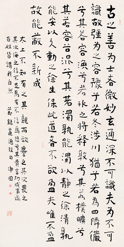 書法是我的最愛(ài),是我生命中不可或缺的部分,她陶冶了我的性情,磨練了我的意志,提升了我的品格;書法乃寂寞之道,萬(wàn)難之藝,若得成就必立大志。”(張德林《百荷堂隨筆》)作為一名藝術(shù)家,對(duì)自己的學(xué)術(shù)建構(gòu)以及境界追求應(yīng)首當(dāng)其沖,必須耐得下寂寞,沉潛治學(xué)。只有打下深厚的基礎(chǔ),今后方可迎來(lái)“質(zhì)”的飛躍。這個(gè)過(guò)程對(duì)于世俗功利心過(guò)強(qiáng)的人來(lái)說(shuō)非常煎熬,而對(duì)于德林先生這樣把對(duì)“藝術(shù)精神”的追求作為責(zé)任與使命的人來(lái)說(shuō),是樂(lè)在其中并深得大味了,因此,他與更多的“書家”大大拉開(kāi)了距離。就其超然物外、與天地交心的氣度與灑脫于當(dāng)今看來(lái)亦不多也。面對(duì)歷史,時(shí)間是最公正的標(biāo)尺,是名家、大家還是大師自會(huì)排序。德林先生不計(jì)得失,善待生命,視藝術(shù)為信仰,化苦修為享樂(lè),淡泊浮華,樸素本真,與萬(wàn)物萬(wàn)情達(dá)至和諧相安的哲人狀態(tài),最有可能使其作品達(dá)到《金剛經(jīng)》所闡述的“無(wú)我相,無(wú)人相,無(wú)眾生相,無(wú)壽者相” 的寥寥無(wú)痕之境界。