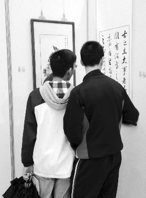 中午12點(diǎn)半,外國(guó)語(yǔ)學(xué)校的“享讀”空間聚集了不少學(xué)生,他們是來(lái)欣賞同齡人的書(shū)畫(huà)作品,而作者是該校八年級(jí)(7)班的許逸豪同學(xué)。