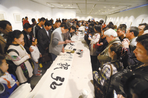 書法家現(xiàn)場(chǎng)揮毫創(chuàng)作。 本報(bào)記者 陳艷 攝