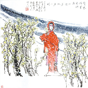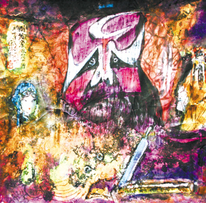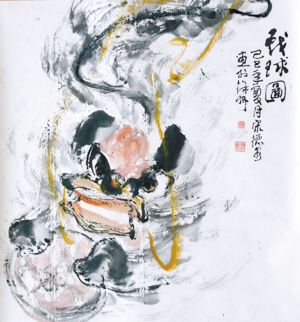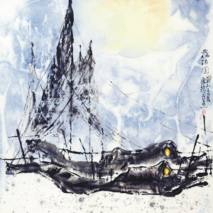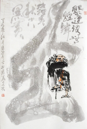 他所畫的戲曲人物,雖寥寥數(shù)筆,卻能抓住人物一瞬間的動(dòng)勢(shì)于畫面上。一幅夸張、逼真、傳神的《三醉圖》,曾使多少個(gè)中外觀眾流連駐足,仔細(xì)品味。有法國人說,這幅畫是受西方藝術(shù)撞擊的結(jié)果,但他說,他的戲曲人物是取材于徐州地方傳統(tǒng)戲曲。準(zhǔn)確點(diǎn)說,它是對(duì)傳統(tǒng)和西方藝術(shù)者兩方面的冷靜棄取。