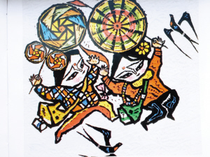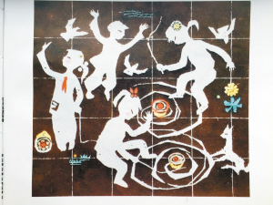 課外美術(shù)興趣小組可以說是孫田成藝術(shù)成長的搖籃。王寄舟老師甚至手把手地教他創(chuàng)作,有了王老師從藝術(shù)思想、創(chuàng)作方法和木刻技巧等方面毫無保留的傳授,孫田成的繪畫技術(shù)迅速得到提高。初二那年,孫田成創(chuàng)作了他的第一幅黑白版畫,那是一個頭戴笠帽、身背糞箕、手舉竹竿的小孩,正吆喝一群豬。孫田成把這幅“處女作”拿給王寄舟看,王老師審視了一會說,挺有農(nóng)村生活意趣,并建議他將畫稿投到報社去試試看。聽了老師的鼓勵,孫田成立刻將畫稿投到了《徐州日報》。沒想到,過了幾天真的刊登了出來,而且還寄來了兩元稿費。當晚,孫田成激動得半夜睡不著覺,那是美術(shù)創(chuàng)作帶給他的初體驗。