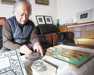 作為一名版畫藝術(shù)家,孫田成的版畫不同于一般的黑白木刻版畫,他是將漢畫像石的技術(shù)和元素融入到了版畫之中,獨創(chuàng)了一種磚刻版畫,并獲得了國家專利。