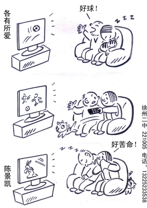 長期擔(dān)任數(shù)學(xué)和美術(shù)兩門課程的教學(xué)工作,陳景凱也始終沒有放棄自己的漫畫創(chuàng)作。他仍是《諷刺與幽默》與全國各大報刊的?停下嫾覅俏臏Y在編輯《中國中學(xué)生報》時,更是期期向他約稿。而在徐州二中的校報上,陳景凱還堅持開設(shè)了《一畫一文》的專欄,每月一期,立足“趣”字,圖文并茂,妙趣橫生,受到了師生們的喜愛。