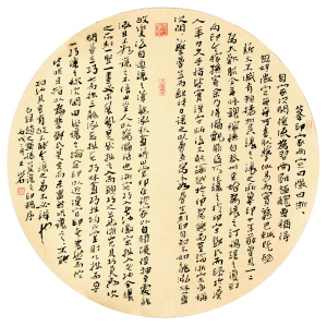 林散之之所以是林散之,沙曼翁之所以是沙曼翁,是因?yàn)樗麄冏猿梢患遥L(fēng)格獨(dú)特,風(fēng)骨傲人。為實(shí)現(xiàn)更高的目標(biāo),王冰石從行草書上突破,毅然變法。然而來一個(gè)突變談何容易,新的表現(xiàn)形式不能憑空創(chuàng)造,需與千年書法之根緊緊相連。那些日子里,王冰石苦思苦想,寢食難安,真是如蘇東坡所說“非人磨墨墨磨人”。終于,王冰石在學(xué)習(xí)晚明書家黃道周的詩帖中找到了變法契機(jī)。舍棄自己多年的書寫習(xí)慣,王冰石對(duì)黃書按自己的審美理念進(jìn)行取舍,在原有的流麗書風(fēng)中糅進(jìn)稚拙渾樸之家,以求實(shí)現(xiàn)碑貼兼容之愿望,實(shí)現(xiàn)內(nèi)涵上的超越。而在字形結(jié)構(gòu)上,王冰石在吸取了黃書精華之后,從漢字結(jié)體切入,用逆向思維方法,改變傳統(tǒng)帖學(xué)審美觀念,結(jié)體變長為扁,重心偏下,給人以俯視之感,效果古拙。如此一變,王冰石行草書容量大增,內(nèi)涵豐厚,不同于古人也不同于今人,個(gè)性躍然紙上。適逢“賽克勒杯”國際書法大賽要在北京開展,王冰石將變化后的作品寄上參賽,引起轟動(dòng)性的爭議。書法大家尉天池對(duì)王冰石的新作大力贊賞,評(píng)價(jià)為“書法各體兼擅,風(fēng)格清雅矯健,陰柔與陽剛沖和,功力與神采俱現(xiàn),有很高的審美見解水平。”結(jié)果,王冰石的作品獲得一等獎(jiǎng),獎(jiǎng)品是一方當(dāng)時(shí)價(jià)值6000元的雕滿羅漢的端硯……