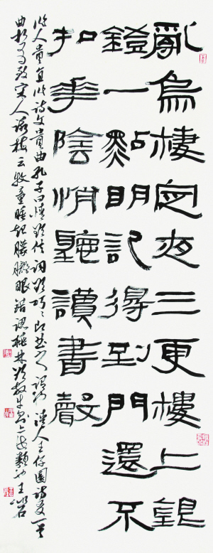 王冰石變法成功了。今天,已步入老年的學(xué)者型的書家王冰石壯心不已,沒有止步,他在深入研究了中國書法史之后提出了一個(gè)新的研究課題,那就是如何研究開發(fā)取之不盡、用之不竭的中國書法資源問題。他以為,我們現(xiàn)在見過的諸多碑帖等等,大都學(xué)過熟知了,這些已經(jīng)存在的東西,很可能只是九牛一毛,中華幾千年的文字史,其書寫的形式和內(nèi)涵,大量的還埋在地下,許多新出土的文字資料是一座極為豐富的中國書法礦藏,有待于我們?nèi)ネ诰,去認(rèn)識(shí),去研究。如同人類對(duì)大自然的探索和發(fā)現(xiàn)還只是滄海一粟一樣,國人今天對(duì)中國書法還有很多的未知。即便是我們今天所知的書藝傳統(tǒng),也還有未被研究開發(fā)的空白。比如漢簡上的草書,秦簡上的篆書,尚無人問津,倘能把這種古人沒有見過的書體開發(fā)出來,那對(duì)中國書法的發(fā)展將會(huì)是一種什么樣的貢獻(xiàn)!