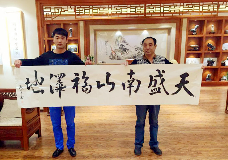 活動期間,王民學(xué)先生現(xiàn)場揮毫題詞:天盛南山福澤地。筆法遒勁有力,瀟灑俊逸,讓在場的觀眾嘆為觀止。王民學(xué)先生解釋說:“南山,福壽之地,有著極深的漢文化淵源和底蘊。‘天行健,君子以自強(qiáng)不息;地勢坤,君子以厚德載物’,上善若水,澤潤南山。在我們淮北市各級領(lǐng)導(dǎo)的關(guān)懷下,把南山村打造成了一個遵循自然的新型原生態(tài)山區(qū),一座集旅游觀光、休閑娛樂、生態(tài)度假、餐飲服務(wù)于一體的南山休閑養(yǎng)生基地。有力的打出了精致淮北的一張靚麗名片,而‘天盛南山’就是引領(lǐng)了我們皖北這一領(lǐng)域的風(fēng)云企業(yè),也是我們尋覓城市轉(zhuǎn)型的一個好的成功的典型,共營南山情,共筑中國夢。”