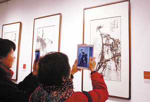 游客中還有不少專業(yè)人士,像賈汪七中的美術教師王老師一大早就驅(qū)車前來了。王老師看畫要在每一幅畫前站十多分鐘之久,看完之后才會拿出手機拍幾張細節(jié)圖。“一幅畫呈現(xiàn)出來的絕不僅僅是好看或不好看的問題,它其中包含了作者的用墨、用水、線條、構圖的思想和水平。所以,看畫要認真研究,去學習。”