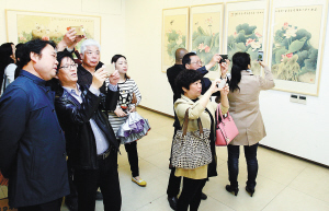 許多市民冒雨前來欣賞畫展。 本報記者 傅倩 攝