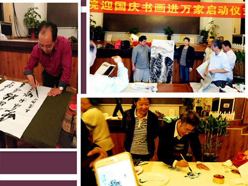 現(xiàn)場創(chuàng)作結(jié)束后,王桂才院長作了熱情洋溢的致詞并對迎國慶書畫進萬家的活動進行具體部署。他在致詞中對徐州濃厚的文化底蘊、歷史名人、書畫大家等進行了回顧,明確指出作為徐州新一代書畫藝術(shù)的傳承人感到自豪和驕傲,應(yīng)充分發(fā)揮自身特長為徐州的發(fā)展建設(shè)盡一份努力、作一份貢獻。此次活動計劃在國慶期間,先后到本市的王場社區(qū)、山水社區(qū)、開元社區(qū)、湖濱社區(qū)、翠湖御景社區(qū)、馬場社區(qū)、東甸子社區(qū)等大型社區(qū)現(xiàn)場為居民送字畫。周密具體的安排,高雅親民的活動再次博得現(xiàn)場嘉賓熱烈的掌聲。