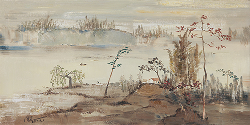 對(duì)于中國傳統(tǒng)書畫的研習(xí)與創(chuàng)作,讓徐里從西畫學(xué)院教育的造型體系里解脫而出,這開啟了他新世紀(jì)以來不斷將中國書畫元素植入油畫的深層變革與探索。這主要表現(xiàn)在兩個(gè)方面:一是他的油畫寫生逐步從條件光色的再現(xiàn)轉(zhuǎn)向意象性表現(xiàn),二是將文人山水畫的意象觀照與寫意筆墨進(jìn)行油彩的異質(zhì)同構(gòu)轉(zhuǎn)換,探求油畫文心意寫的鮮明中國精神。他將書法用筆的剛健雄渾轉(zhuǎn)換為油彩筆觸的雄強(qiáng)奇肆、縱橫騰挪,使畫面既有超越物象的細(xì)微敘事,也讓被適度符號(hào)化的物象通過筆線的抽象性表現(xiàn)而承載心性、境界與品格。畫中早期人物形象實(shí)將希臘古代瓶繪、埃及墓室石刻和藏傳佛教繪畫三者融合為一,通過書寫性筆線所達(dá)到的物我合一、所承載的格調(diào)與境界,才真正凸顯了意象油畫以文心詩境作為其內(nèi)核的中國藝術(shù)精神。中西融合表達(dá)出人生達(dá)觀的哲思化意味,是道天人合一,心物交融,意境上進(jìn)入禪宗的境界。