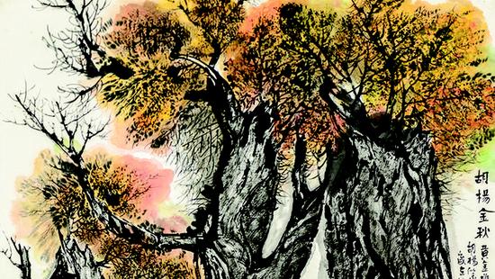 “活著一千年不死,死后一千年不倒,倒后一千年不朽,這是胡楊的精神。畫胡楊,是為了給人一種精神的啟迪,要奮斗、拼搏、永不言敗。”方茂鴻的足跡遍布名山大川,為的是繪畫。為了畫好胡楊林,他特意挑不同的季節(jié)數(shù)次奔赴新疆,每次傲然屹立的胡楊都使他深受感動,“胡楊枝干那么雄壯,所以我用筆也要那么蒼勁?赐旰鷹盍只貋淼暮枚嗵於技硬灰,就想來表現(xiàn)它。”《胡楊系列》遠(yuǎn)未完成,接下來,方茂鴻還要繼續(xù)畫下去,“要努力尋求突破,不光要畫本質(zhì)的東西,還要探索表達(dá)形式上的變化。”