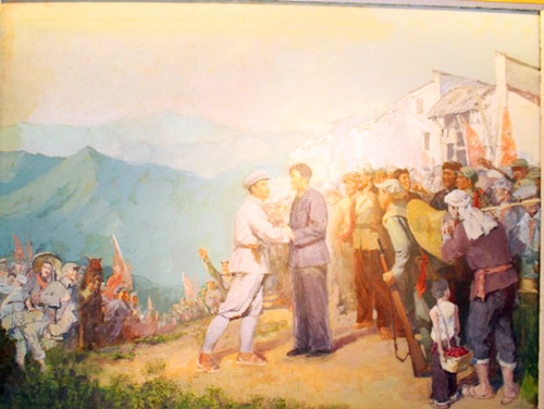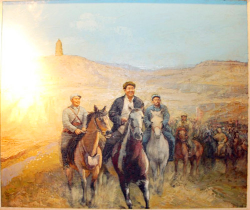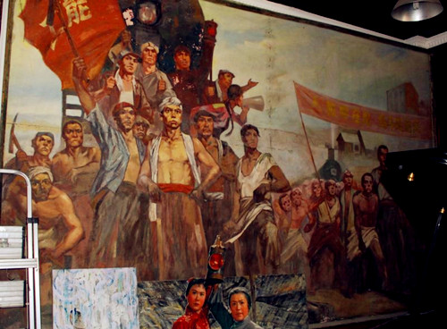 2003年,鐘鑫在徐州濱湖公園臨時畫廊內(nèi)的一角,有幸發(fā)現(xiàn)堆在一起的20多幅文革油畫作品。雖然這批油畫破爛不堪,也沒有畫家的題款,但是這一批作品的藝術(shù)水準(zhǔn)很高,一看就是老作品、好作品。他迫不及待的買下了這批油畫,當(dāng)時內(nèi)心非常忐忑,被這批油畫折騰的每天睡眠都不是很好,也不知道是悲是喜。他托畫家劉克寧把油畫照片拿給《毛主席去安源》的作者劉春華老師看。按照他的提議跑到廣州、海南找高虹老師、找羅工柳的女兒幫助尋找線索、查找畫家。四年多的時間,走訪了油畫界名流上百人,花去費(fèi)用好幾十萬。終于在2008年通過徐州展覽館的老館長和書畫界的朋友,找到了這批油畫主創(chuàng)油畫家魏魯寧老師(江蘇省美協(xié)理事、江蘇省油畫協(xié)會理事、第八屆全國美展江蘇省評委、徐州市美協(xié)常務(wù)副主席),同時也找到了油畫《第一次黨代會》《毛主席視察云龍山》的畫家——著名美術(shù)教育家李玉義老師,并且到南京拜訪了江蘇省文化廳副廳長江蘇省國畫院院長趙緒成和從徐州調(diào)南師大教授方冰山、虞建、江蘇畫刊李建國,以及《淮北戰(zhàn)役決戰(zhàn)前夜》、《西柏坡》的作者——當(dāng)年任徐州文化館館長的賀成老師。(全國美展江蘇省評委、江蘇美協(xié)理事、江蘇省畫院任務(wù)創(chuàng)研室主任)。