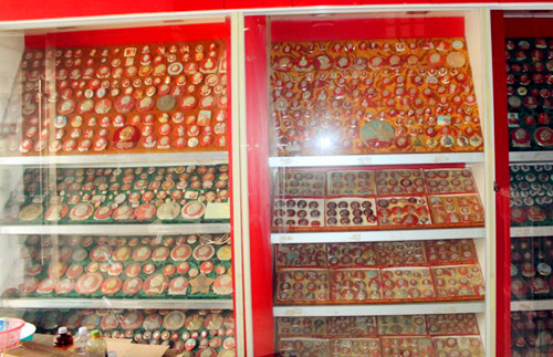 八十年代初,人們對瘋狂的文革時期仍心有余悸,紅色藝術(shù)品收藏活動處于地下狀態(tài)。那時候鐘鑫已收藏毛主席像章2000枚、錢幣20000枚、連環(huán)畫1000本,文革郵票1000余張。九十年代文革紀(jì)念品收藏活動大張旗鼓的登場,這些具有研究“文革”史有價值的紅色藝術(shù)品突然熱了起來。很多紅色藝術(shù)品沒有被保留下來,“紅色經(jīng)典”藝術(shù)品來越少。早幾年拍出的東西都被收藏家收藏不愿再出售,加之國外藏家進(jìn)場,市場更加趨之如騖。值得慶幸的是鐘鑫下手的早三名跑文革藝術(shù)品的商販在上海、北京、廣州、南京、新疆、內(nèi)蒙古等地幫他大量地套購紅色經(jīng)典物品。三年時間收獲極其豐富,陸續(xù)買進(jìn)上萬件藏品,其中不少還是國內(nèi)罕見文物。