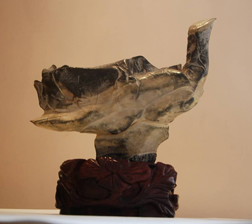 江蘇徐州發(fā)現(xiàn)的這塊石頭十分奇特,從七個角度觀察,竟然會呈現(xiàn)七個完全不同的、完整的動物圖像,這在世界范圍內(nèi)也是十分罕見的。據(jù)悉,該石為靈璧類呂梁石,靈璧石的石質(zhì),兼有呂梁石的造型。據(jù)業(yè)內(nèi)資深人士評價,此石神似、韻足、質(zhì)堅、皮光、色和。形神具佳,昂然向上,動感強,雖是靜物,但該石象活了一樣,充滿了靈氣。尤其作為一只鳥,身體各部位齊全。頭、頸、身軀、肌肉、羽毛、腿一個不缺,十分完整。特別值得一提的是孔雀的頭和脖子始終向上,人們常說驕傲的孔雀,對人的啟示:揚眉吐氣,順風(fēng)順水。大家都知道,孔雀和鶴的文化內(nèi)涵十分豐富,在中國的傳統(tǒng)文化中占有極其重要的地位:傳說中孔雀是鳳凰的化身,是吉祥幸福的象征。古代官員用孔雀翎毛做官帽的裝飾品,送孔雀的相關(guān)藝術(shù)品即有祝愿喬遷、升官之意。在希臘神話中,孔雀更象征著赫拉女神。鶴,又稱仙鶴,傳說是一種仙禽,象征長壽,富運長久。仙鶴是鳥類中最高貴的一種鳥,古代被稱為“一品鳥”,地位僅次于鳳凰?兹负旺Q還有一個美麗的德國寓言故事。此外,孔雀是陽鳥,百無禁忌,還有重生、驅(qū)毒、避邪的吉祥含義。