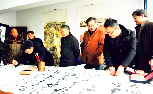 馬培童焦墨藝術(shù)館舉辦開館儀式期間,藝術(shù)氛圍甚是濃厚,一是參觀了馬培童先生的畫展,這些作品集中反映了近年來他對焦墨創(chuàng)作新的認識和感悟,盡可能追求氣勢磅礴的氣氛,以體驗焦墨畫的獨特風(fēng)格。與會書畫界同行紛紛稱贊,馬培童先生的焦墨山水作品充分體現(xiàn)了其焦墨技法的純熟,抒發(fā)了他對大自然的熱愛。他的焦墨作品和其他焦墨畫家的作品不同,焦墨的表現(xiàn)力傾向于向細密方面發(fā)展,研究出了自己獨特的焦墨技法,可謂大成。二是藝術(shù)家們即興揮毫潑墨,吟詩作畫,交流心得,展示創(chuàng)作,合影留念,其樂融融。三是群賢畢至,少長咸集,書畫交流,相互學(xué)習(xí),相互交流,相互促進。