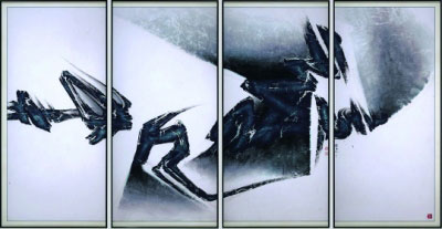 劉國松 《宇宙即我心之四(四聯(lián)作) 》 182×346厘米 紙本設(shè)色 1998年